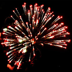 Красная пальма с белым мерцанием. Золотая пальма переходящая в золотые трещащие сферы. Парчовые шлейфы с красными жемчужинами. Серебряная пальма с золотой хризантемой переходят в золотые трещащие сферы.