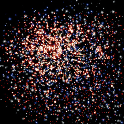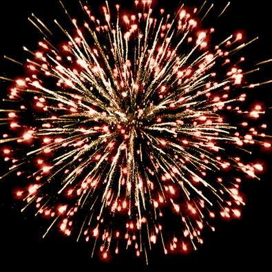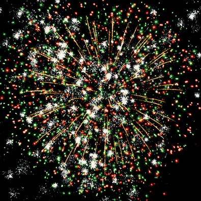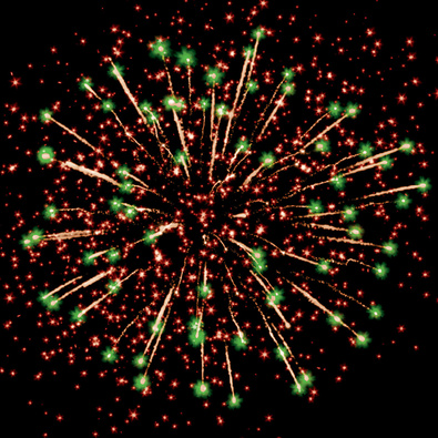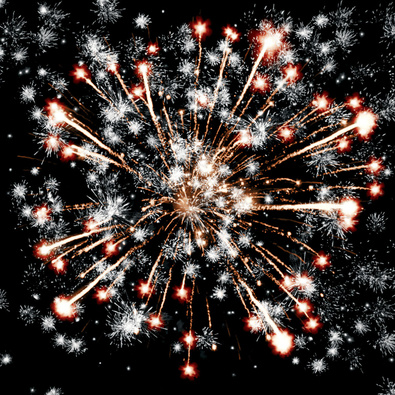 Свистящие элементы, разноцветные кометы разрываются сферами из золотых форсов с цветными мерцающими огнями на концах и множества трещащих серебряных искр и огней.
